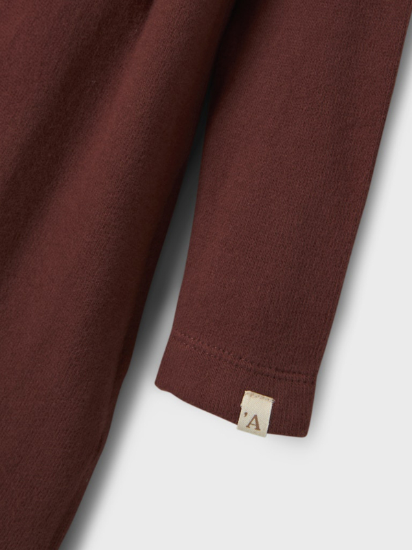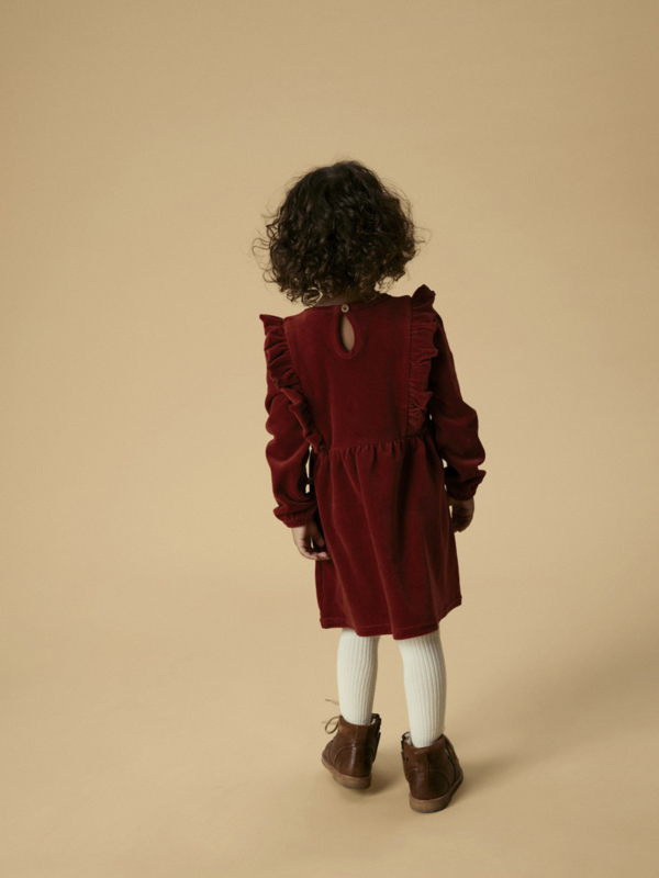 Echt een lekker jurkje dus voor herfst en winter! In een mooie, roodbruine kleur en gemaakt van biologisch katoen.